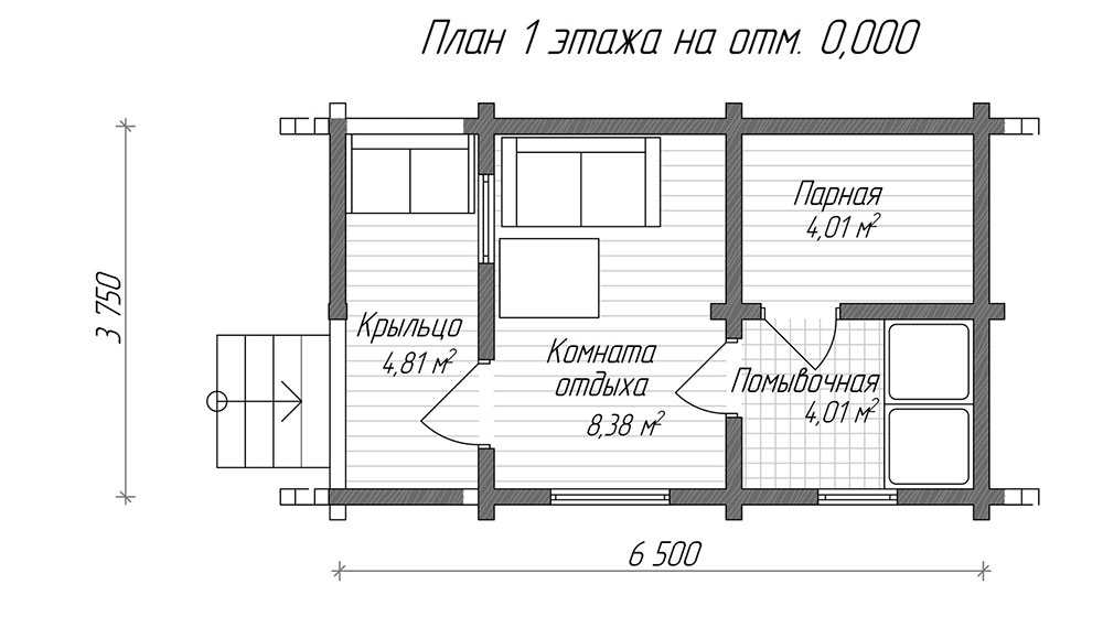 Помещение для мытья и парная разделены дверью, что позволяет долго сохранять последнюю достаточно горячей. Таким образом, один раз растопив баню, ей сможет воспользоваться несколько человек, и парная останется такой же горячей, как и в самом начале. Второе преимущество такого разделения помещений состоит в том, что вы можете держать влажность в парилке на желаемом уровне.