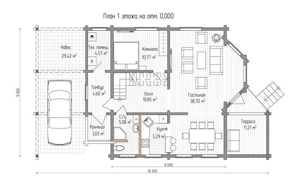 Проект «Фиеста» (Площадь 140 кв.м + навес 29 кв.м)