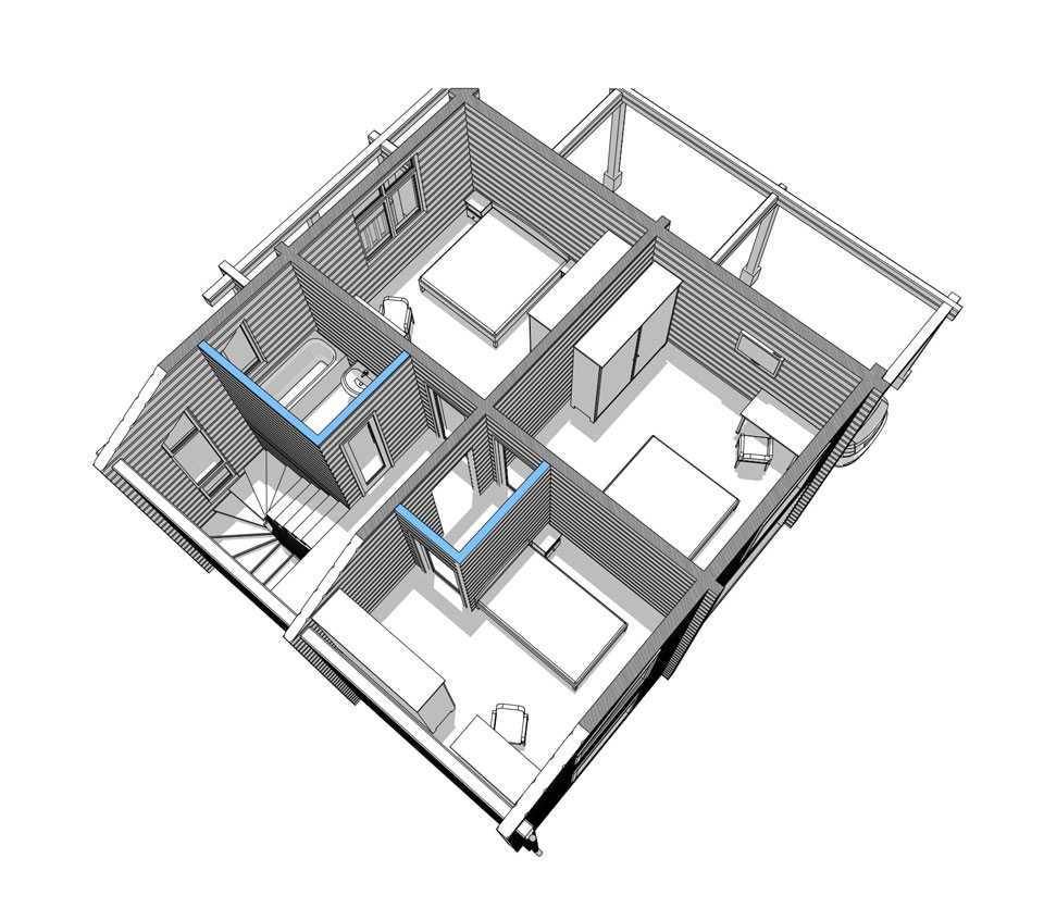 - Внутренние стены из клееного бруса 160х185мм