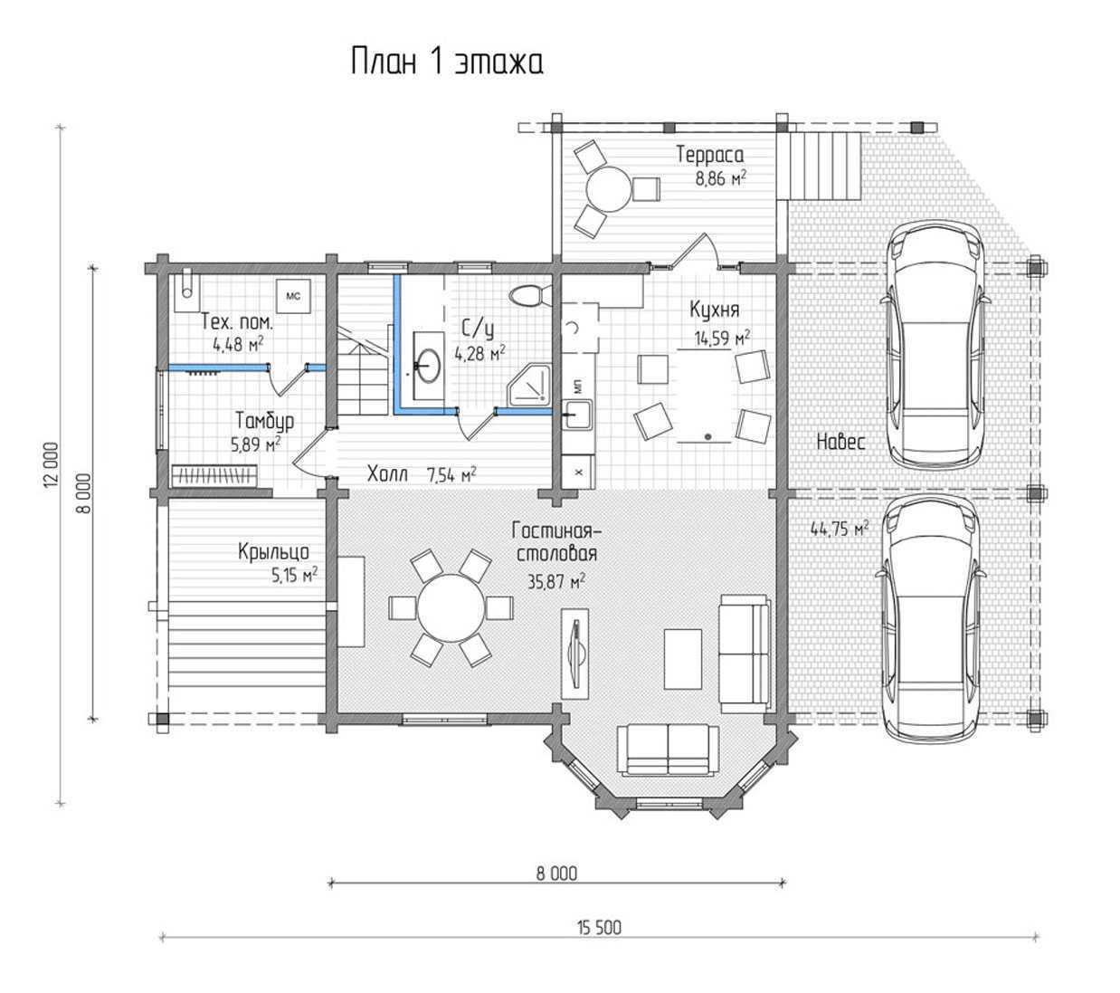 Проект «Сказка» (Площадь 140 кв.м. + 45 кв.м. навес)