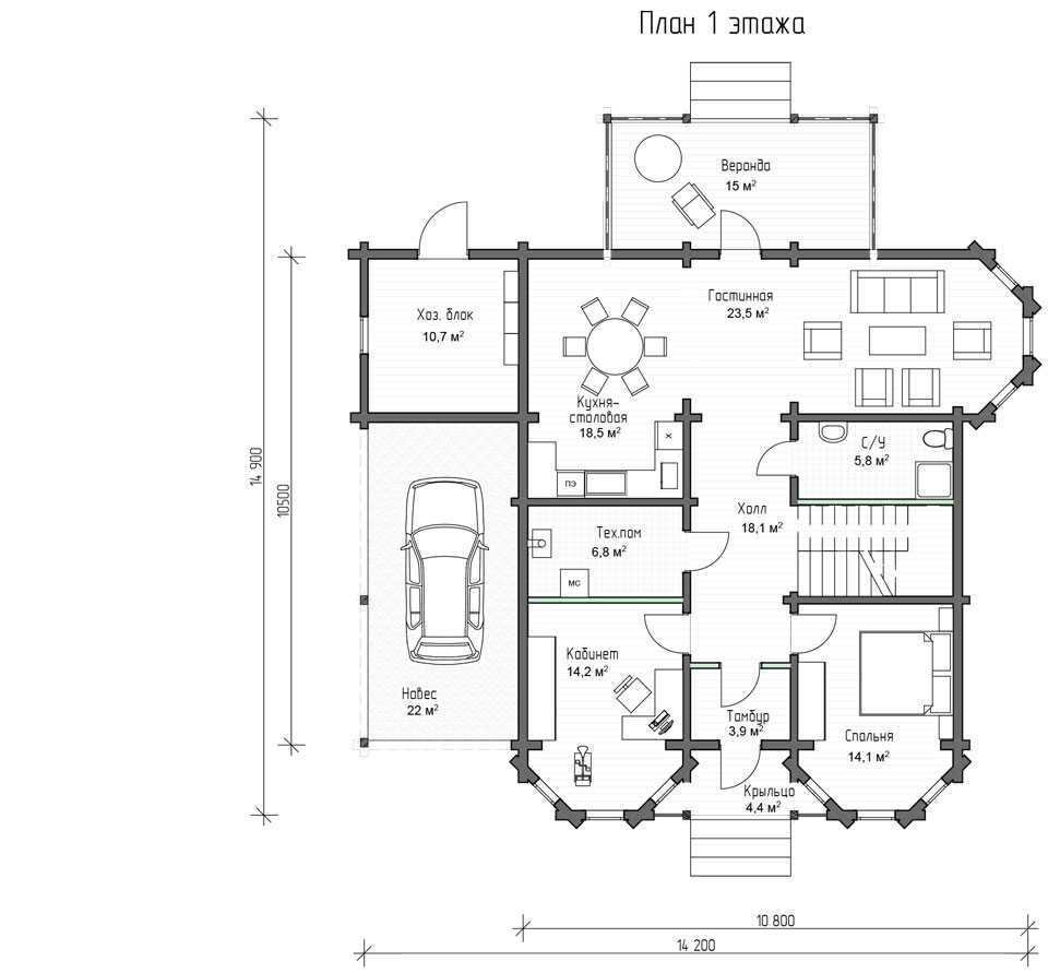 Проект «Сова» (Площадь 220 кв.м + навес 22 кв.м)