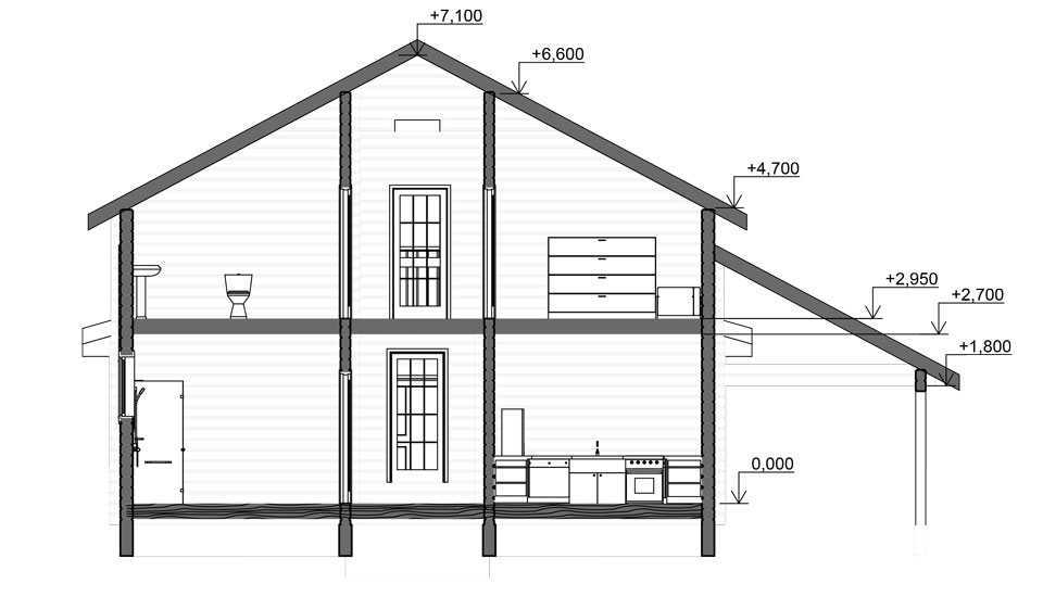 - Внутренние стены из клееного бруса 160х185мм