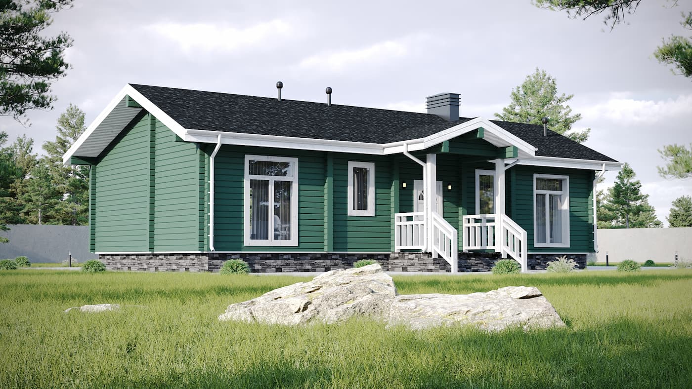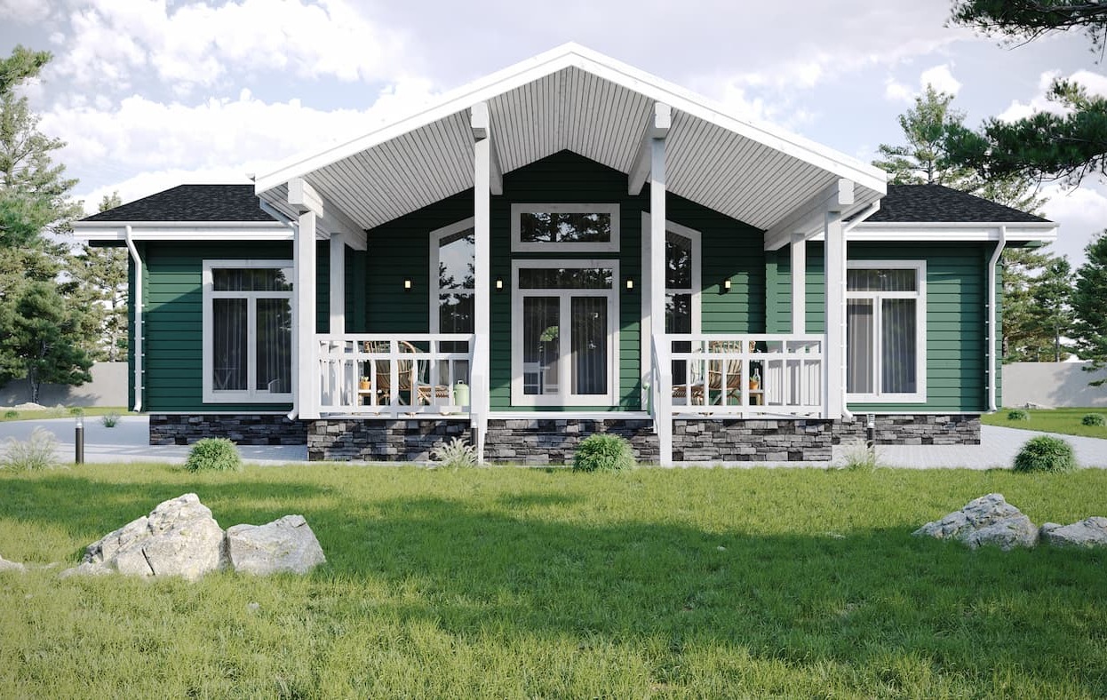 Проект «Виллабаджо» — современный одноэтажный дом из клееного бруса 158,7 м² от компании ВДК. Идеальный выбор для семьи в Москве и Московской области: 3 спальни, 2 санузла.