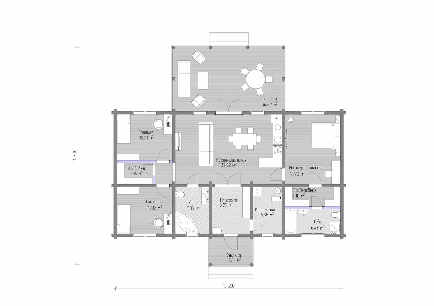 Проект дома из клееного бруса «Виллабаджо» — 158,7 кв.м в Москве и Подмосковье