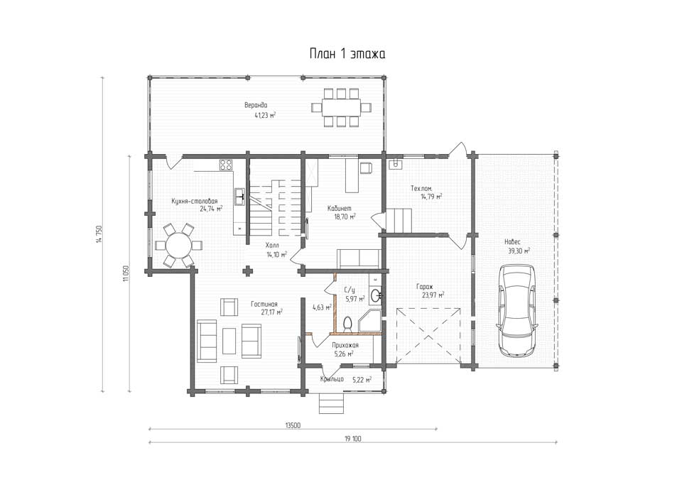 Проект «Зенит» (Площадь 180 кв. м + навес 45 кв.м)