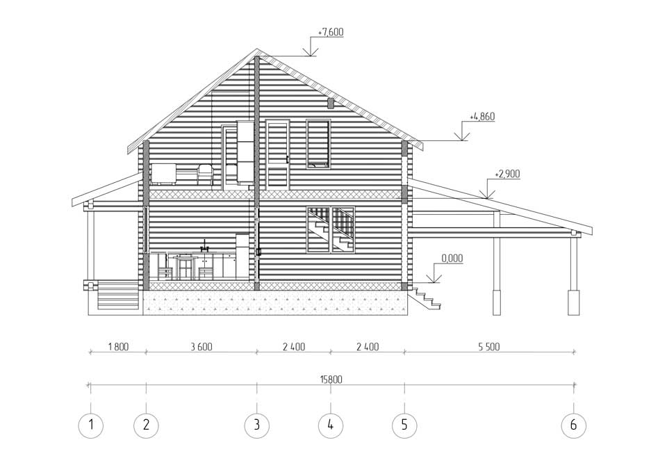 - Внутренние стены из клееного бруса 160х185мм